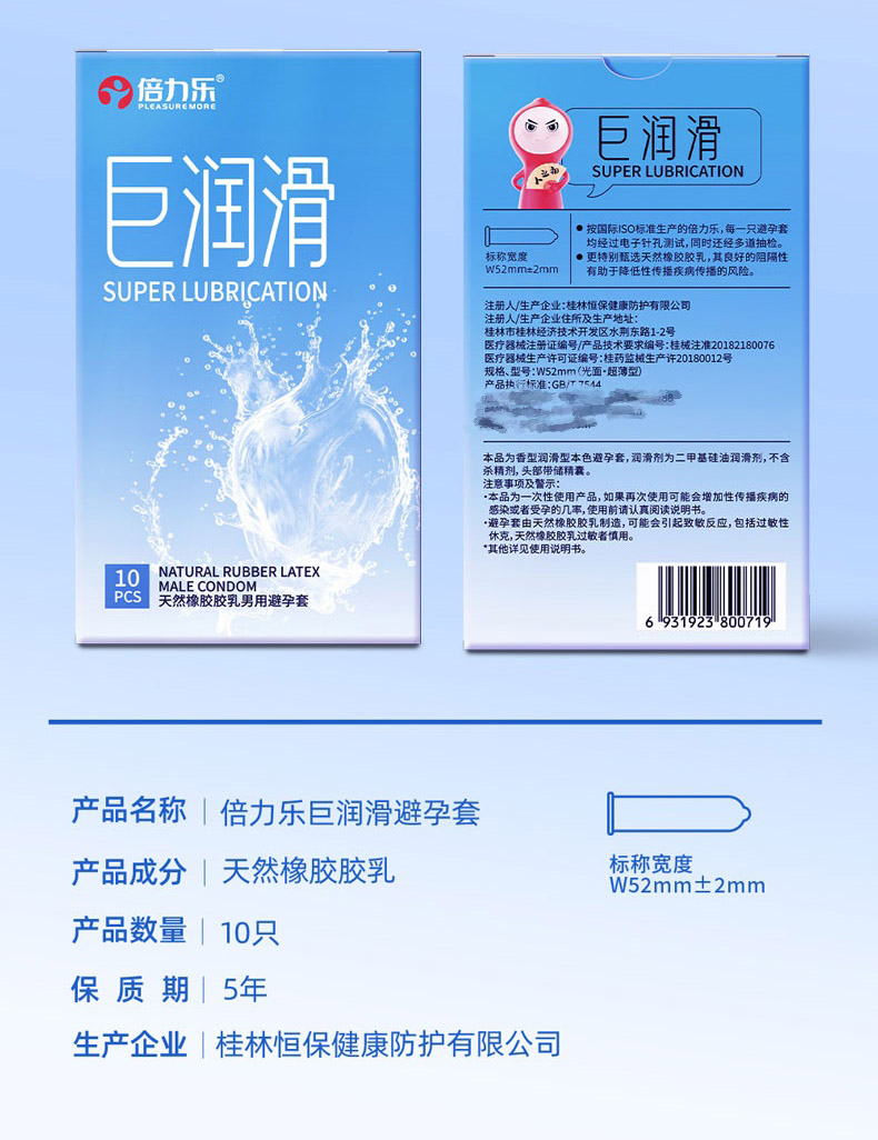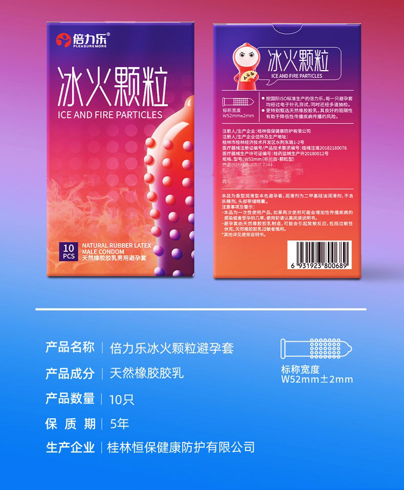 > 倍力乐避孕套冰火颗粒玻尿酸巨润滑超薄002安全套性成人用品代