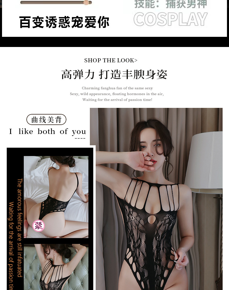 产品介绍: 性感镂空连体衣。