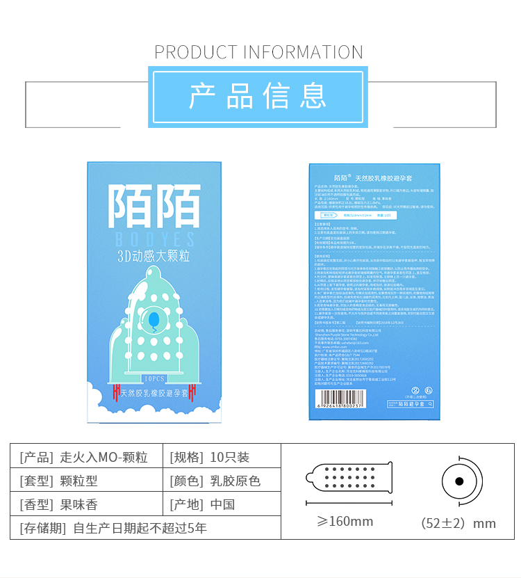 产品介绍: 陌陌避孕套走火入mo颗粒10只装。