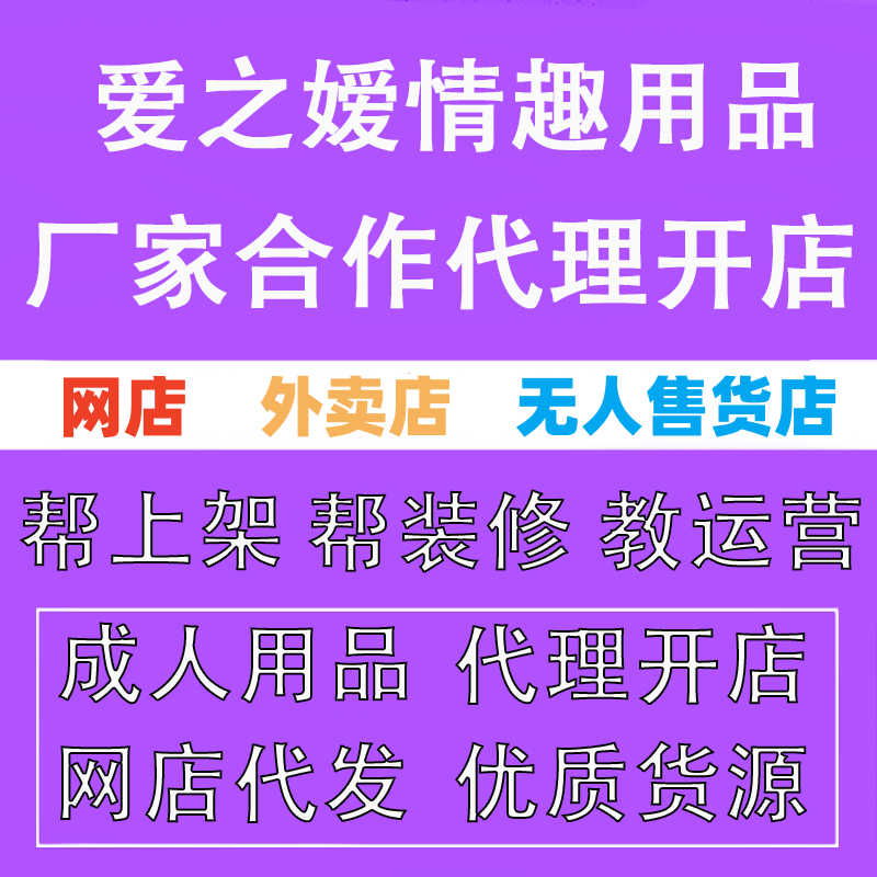 我们爱之嫒品牌有6000多款产品,产品类目齐全且丰富多样,代理开店的 方式更是多种可选:拼多多,淘宝,美团,饿了么,同城配送,一件代发,24小时无人售货店,无人商超,1688小程序等等,我们是专业做成人用品,有专业的运营和技术团队,更有长达5年经验左右的选址督导。