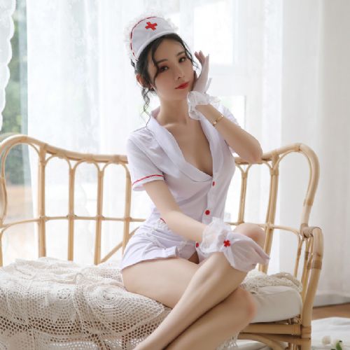 - 情趣内衣女式深V角色扮演护士制服蕾丝手套套装情趣用品加盟