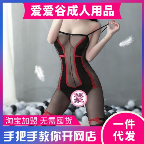 情趣内衣透明露肉性感双色提花连体丝袜印花套装成人用品加盟代理