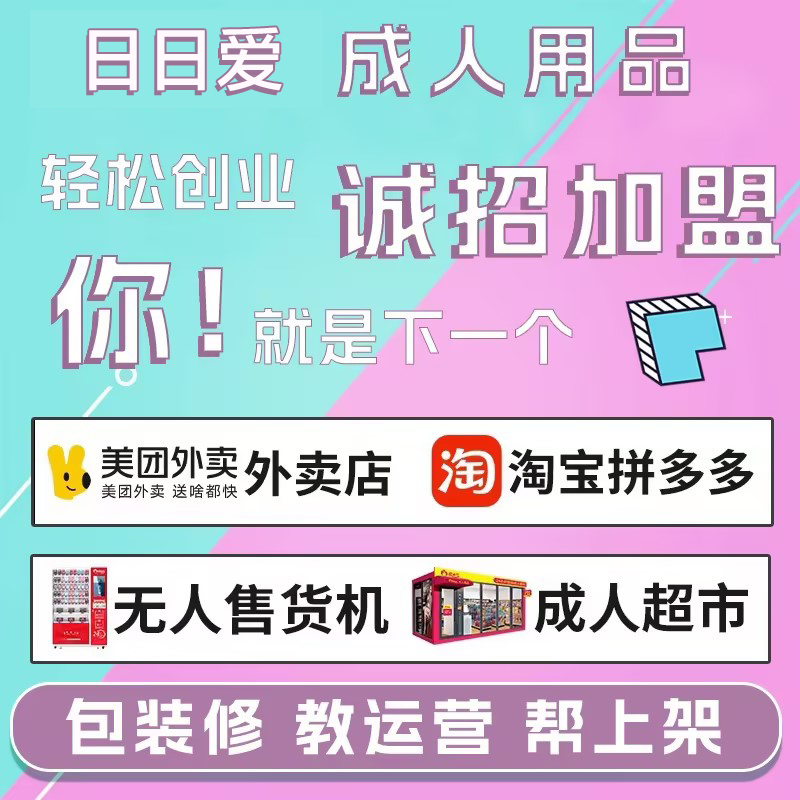 产品介绍: 成人用品代理加盟货源一件代发美团外卖无人售货淘宝开店。