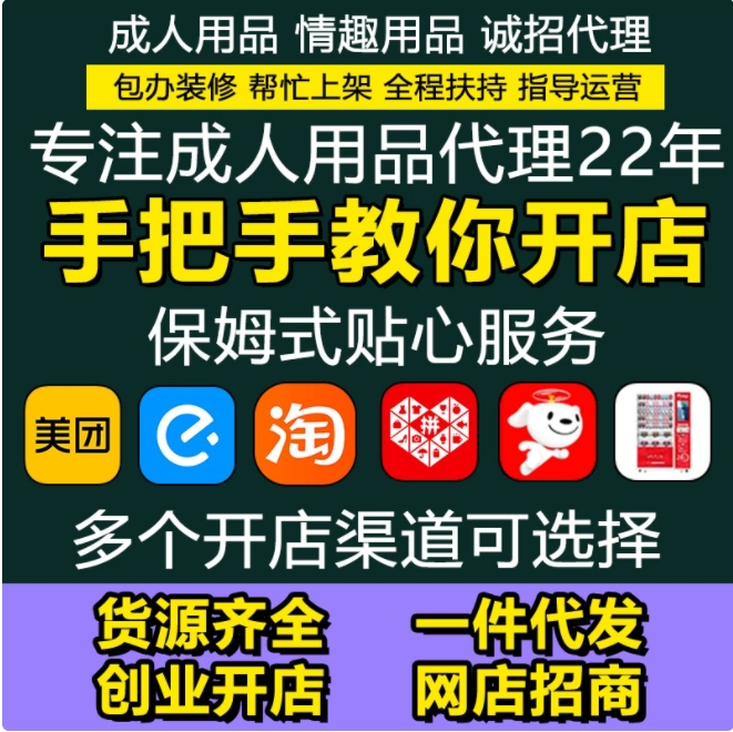广州彤喵喵情趣成人用品,全国服务,小白新手创业者一人开N店:小程序、淘宝、拼多多、京东、24小时无人售货店、自动售货机、美团饿了么外卖、云仓自助超市、实体娃娃馆线上线下都可做,将消费者一网打尽。帮开店、装修、上架、还有运营专员一对一指导,终身服务。提供成人用品各大品牌一手货源,厂家直供一件发货。单品一般有200%-500%以上的利润。