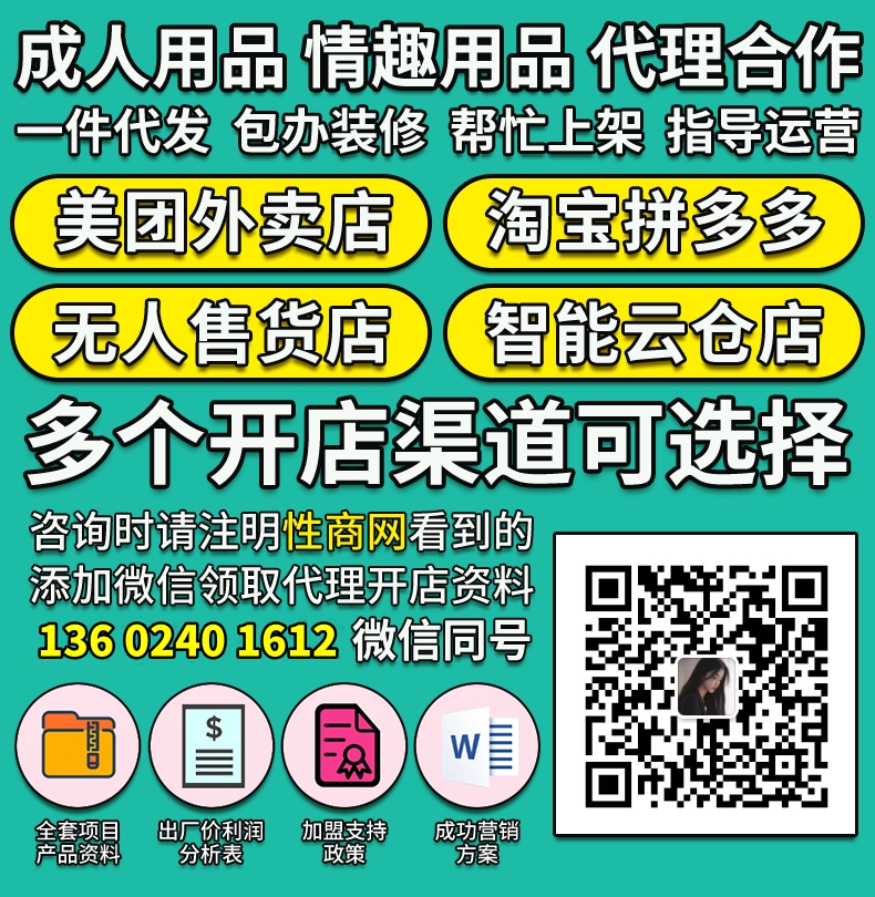、装修、上架、还有运营专员一对一指导,终身服务。提供成人用品各大品牌一手货源,厂家直供一件发货。单品一般有200%-500%以上的利润。提供营业执照、二类医疗办理指导。授予代理商开网店、实体店资质证件。