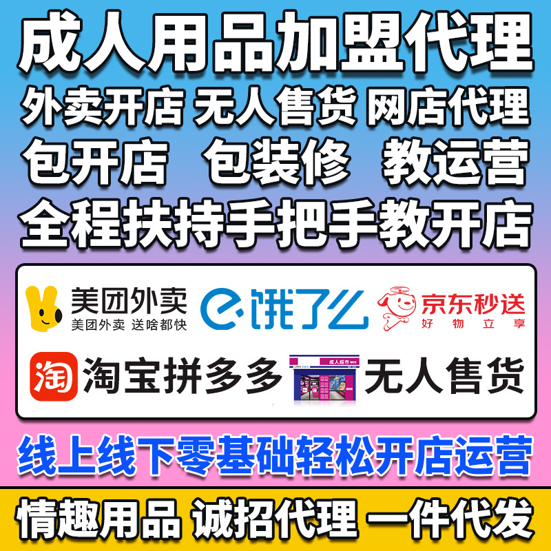 噫小拾成人情趣用品代理加盟美团外卖店淘宝网店厂家货源一件代发,一人开N店:微商、淘宝、拼多多、京东、天猫、阿里巴巴、有赞、无人售货店、美团外卖、饿了么、线上线下都可做,将消费者一网打尽。帮开店、装修、上架、还有运营专员一对一指导,终身服务。提供成人用品各大品牌一手货源,厂家直供一件发货。单品一般有200%-500%以上的利润。提供营业执照、二类医疗办理指导。授予代理商开网店、实体店资质证件。咨询微信:2368110721