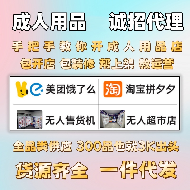 上班族,宝妈,大学生都可以做的副业,一部手机,开成人用品线上网店,外卖店,一人可以在多个平台上开店。边上班边赚钱,全天进账,隐私性强,一件代发无需囤货发货,亲朋好友不会知道。成人用品开店有多种套餐可选:无人售货机店、无人仓、美团外卖、饿了么、淘宝、拼多多、京东、天猫、阿里巴巴、微信小程序、独立商城等。单品一般有200%-500%的利润。提供营业执照、二类医疗办理指导。授予代理商开网店、实体店资质证件,省去很多麻烦。咨询微信:1046141857