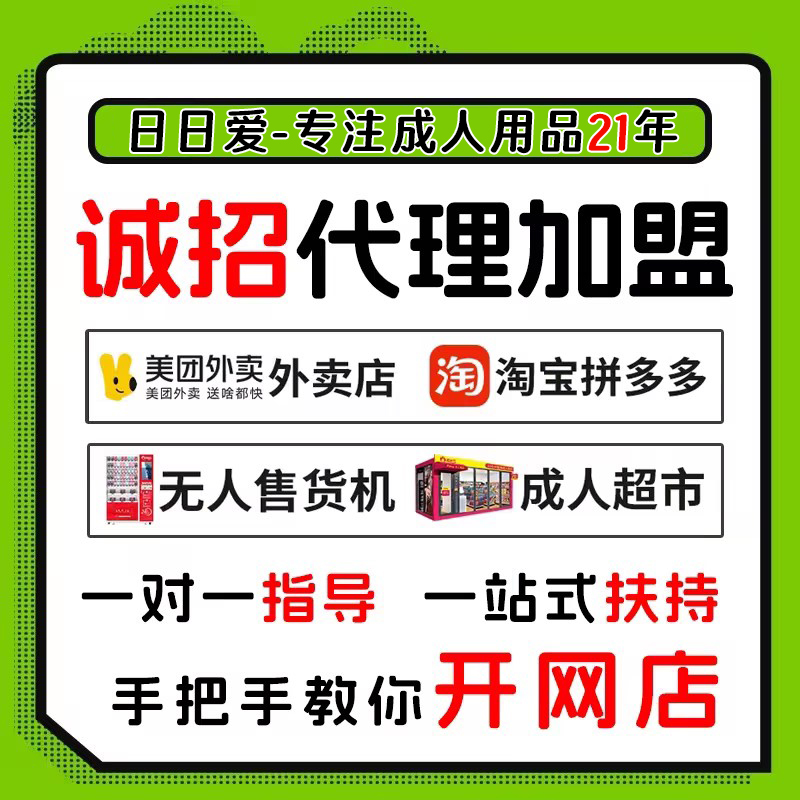 提供:低供货价的货源、技术性的服务、和运营性服务,二类医疗办理指导,授予代理商开网店、实体店资质证件,包括但不限于:开店、装修、上架、美工、店铺定位、产品定位、选品、店内活动、产品活动等日日爱成人用品合伙人代理项目运营一对一指导服务,提供厂家一手货源,低价供货,支持一件发货。在线留言或者“拨打电话180 0221 9947同微信”我们会马上联系您!欢迎实地考察项目!