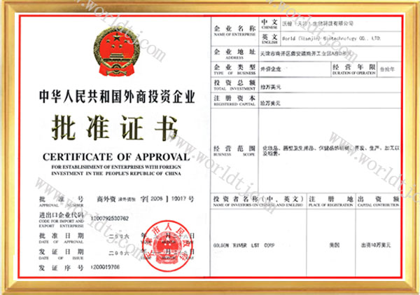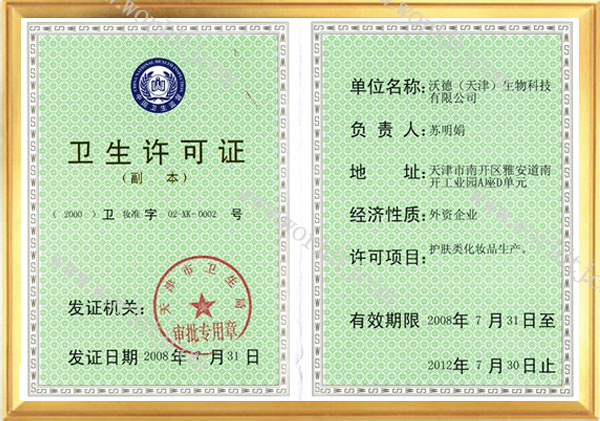 沃德(天津)生物科技有限公司资质证书