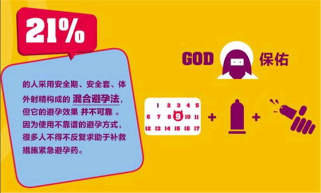 21%的人采用安全期,安全套,体外**构成的 混合避孕法