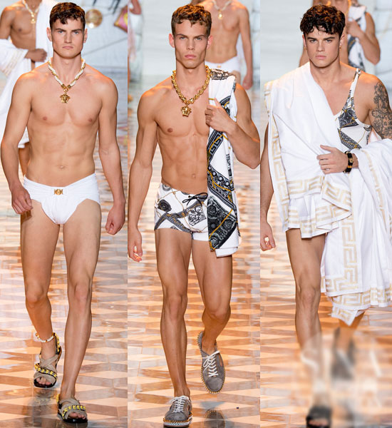 男性内衣大秀,无非展示的是男性阳刚魅力。而Versace充分领悟了这股精神,拳击腰带的装饰就体现了“铩羽而归”的荷尔蒙。