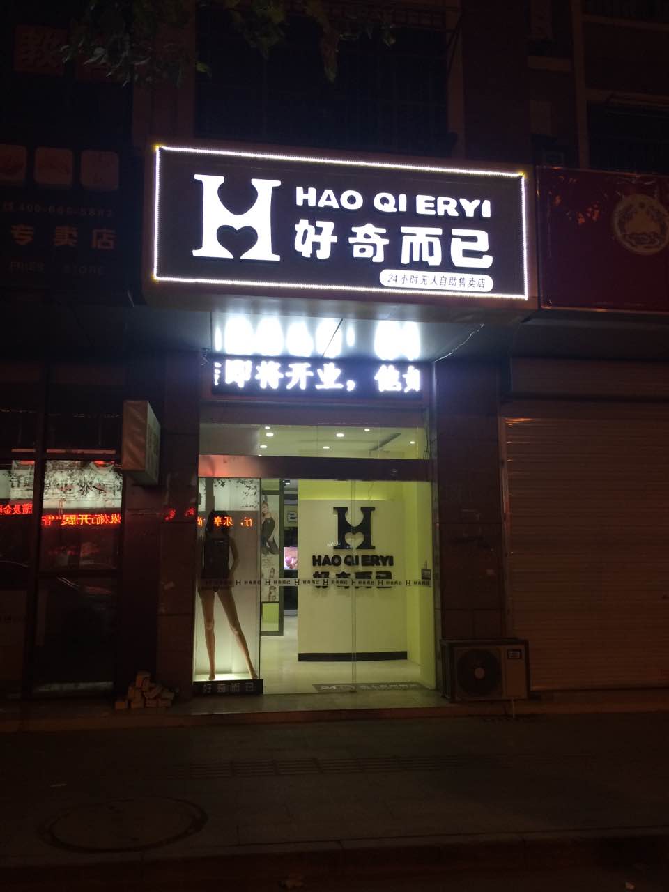 2014年11月18日,中国首家高端情趣用品24小时无人自助售卖店-旗舰店正式落户上海时尚商圈——华灵路1966号。这是6年磨一剑,历经6年软件技术研发,整合成人用品品牌,强势进入中国经济之都-上海.好奇而已全国开业**,打响**序幕,江苏宿迁,湖北武汉,安徽滁州已经相序开业,为好奇而已发展史怎天浓墨重彩一笔。