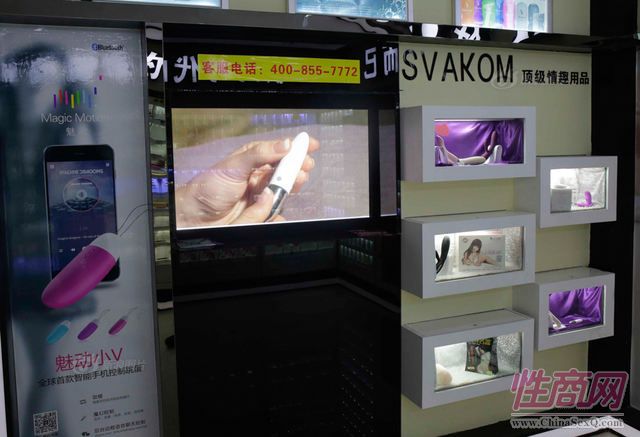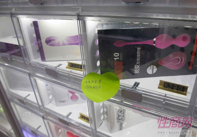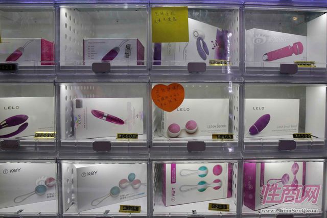 图为展示柜里情趣用品。