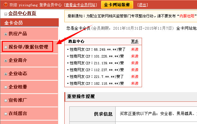 内容摘要:性商网付费会员新开通上传报价单、数据包功能。详情见以下图例: