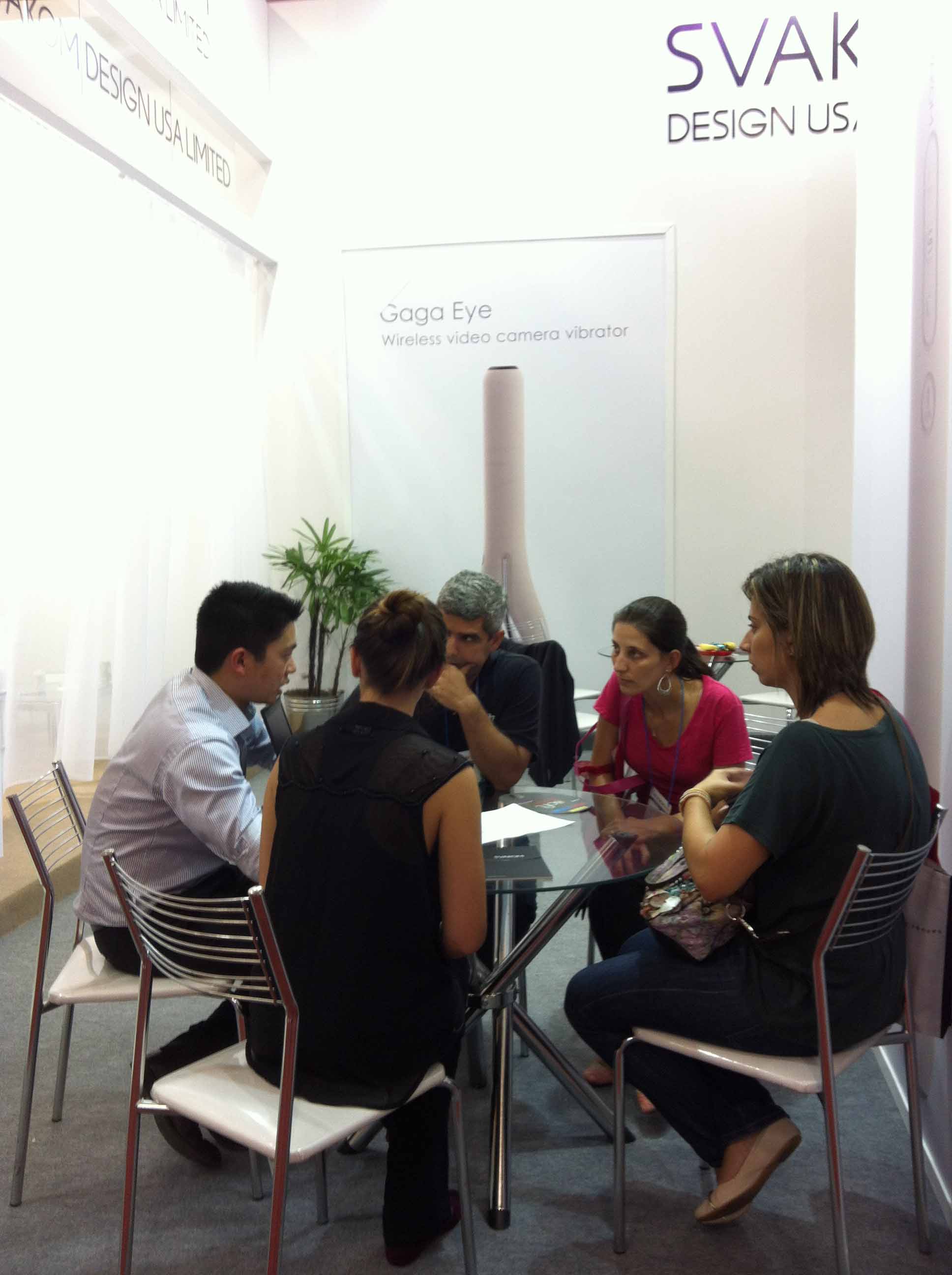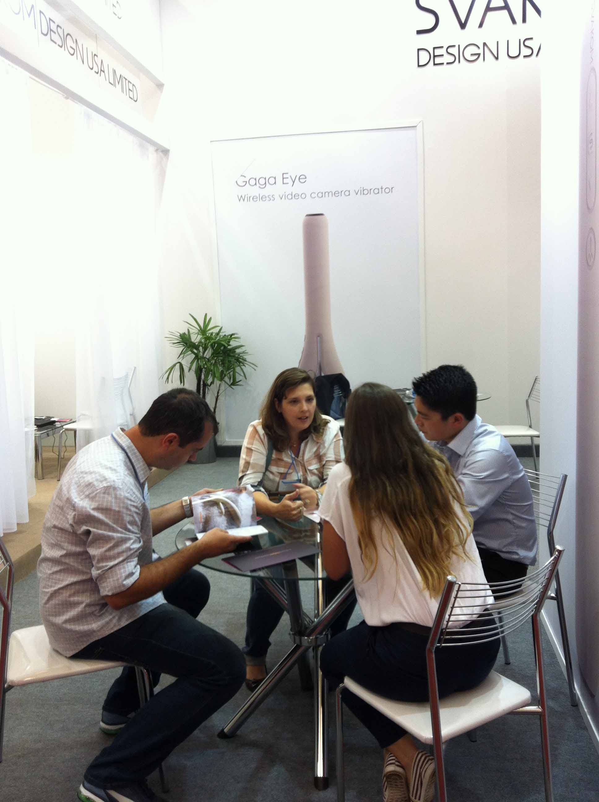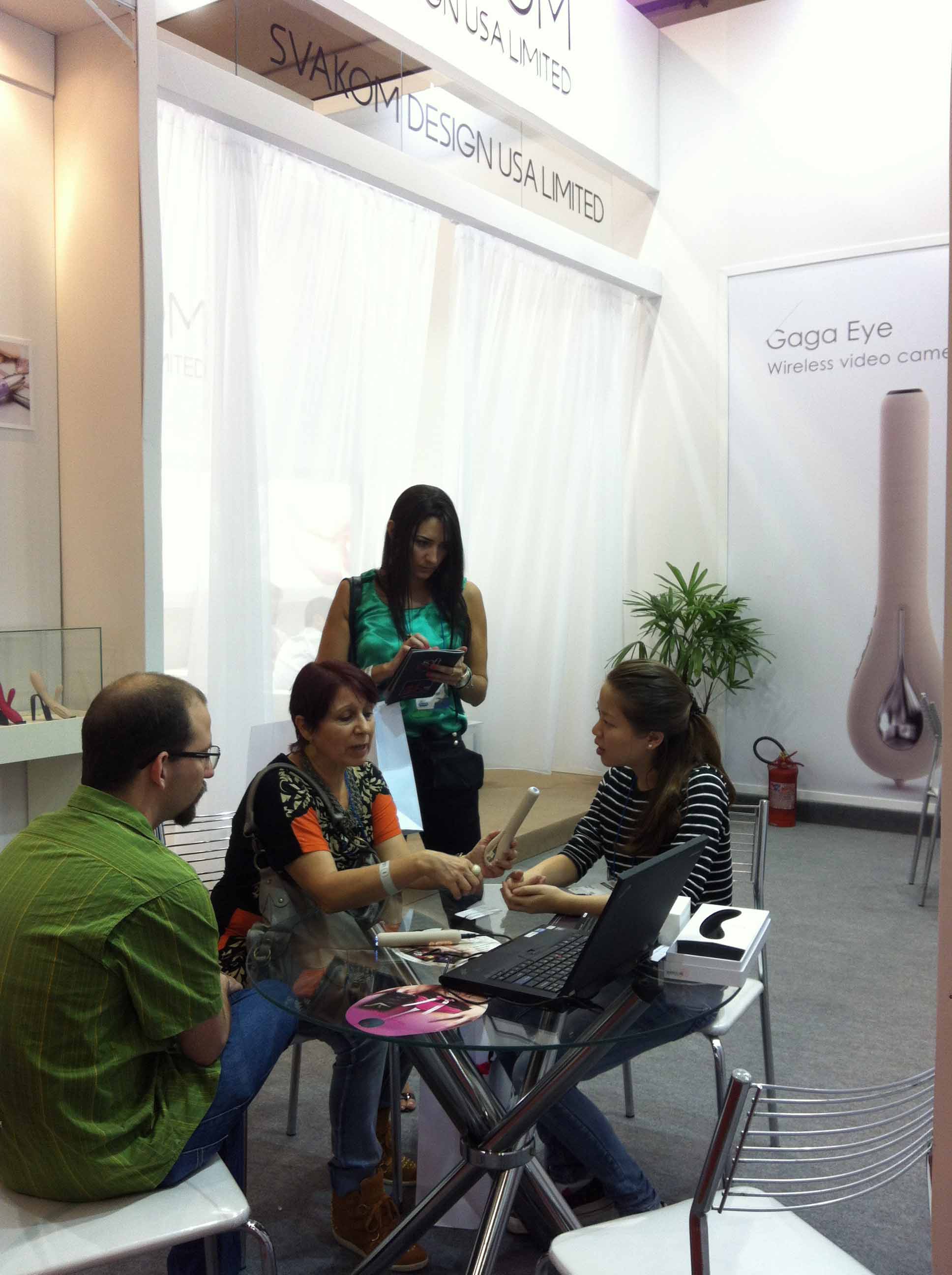 SVAKOM作为初次参展商展示了一系列中等价位的振动棒和按摩器。这些时尚而又款式新颖的性玩具包括:情趣震动棒、情趣舌头、G-spotters。还有一些“额外卖点”:超长使用、触摸传感器、加热功能。但有一项真正令参观者震惊:SVAKOM GAGA,它是一个带有USB数据线的可以插入电脑的内窥震动棒,它可以让你探知未知的神秘区域。