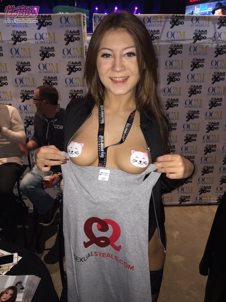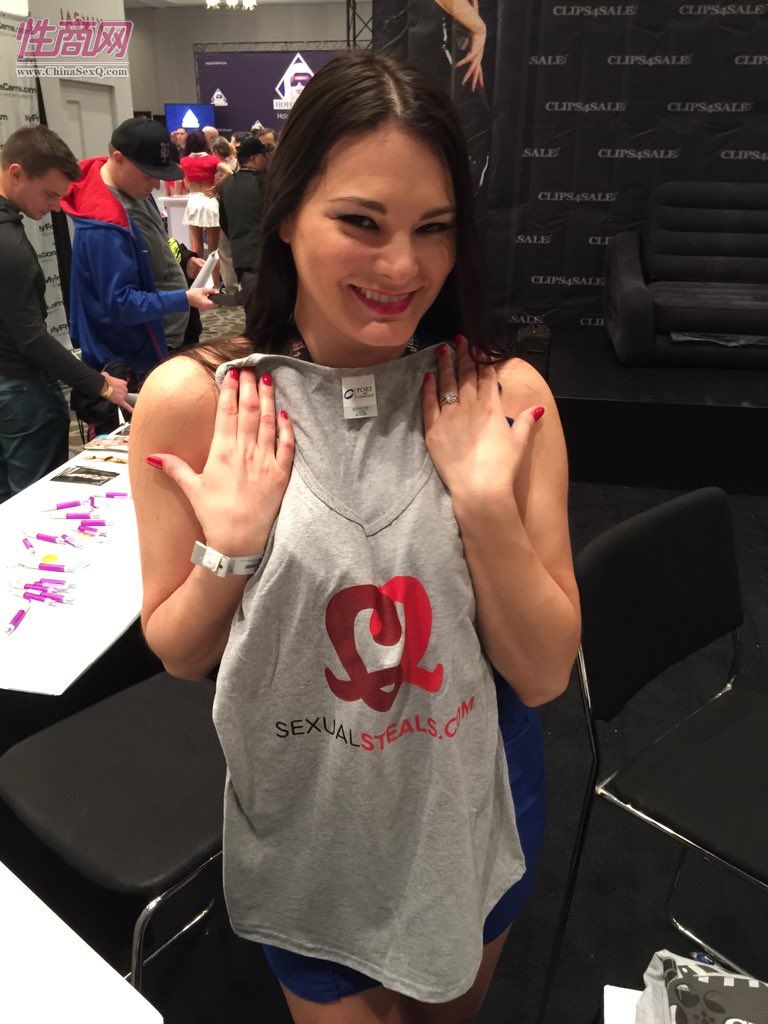 2016美国拉斯维加斯成人展AVNShow于当地时间1月20日拉开帷幕。某网站在现场做推广活动,赠送T恤纪念衫,邀请参展的影视明星合影。