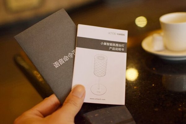 小巢智能灯标准配置为“台灯*1、电源输入*1、产品说明书*1(内含保修卡)、语音命令语卡片*1”,配置上比起很多智能灯来说并无过分意外之处,唯一让人迷惑的或许是那一张神秘的语音命令语卡片。