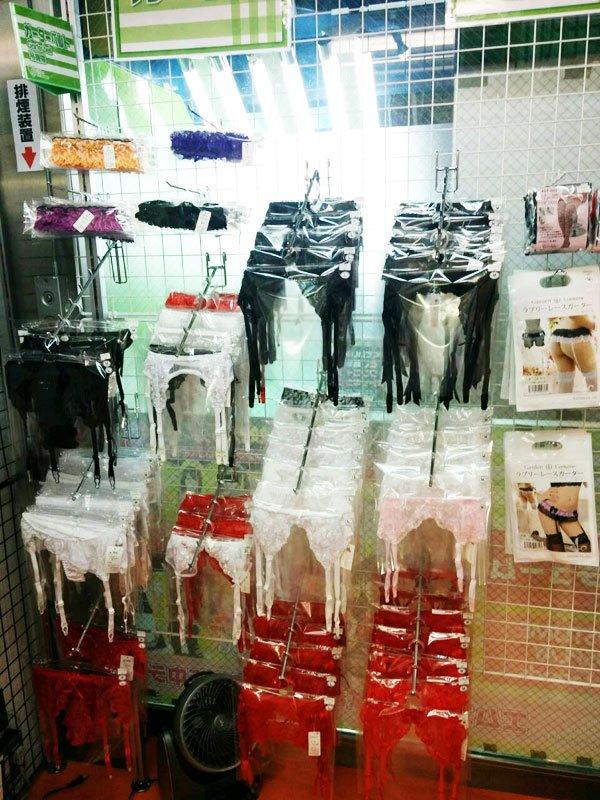 五楼与玩具毫无关系,它摆放着各种女性内衣和内裤。除了黑**色的吊带袜之外,这里还有睡衣和透明的睡裙。不幸的是,大部分内衣尺寸都是较小的日本尺寸,因此我不确定究竟有多少外国女性能穿上它们。