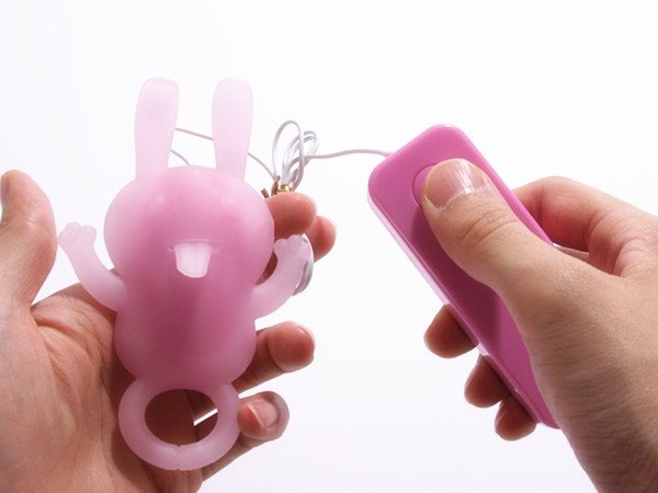 两个人一起使用的时候可以把小兔子的环状脚套到男性器官上。(弹性硅胶质地有延时锁精效果)