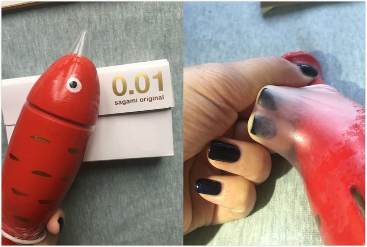 整个套套都有一种很轻盈的感觉。闻起来也很清新,润滑剂和冈本其他系列都不同,就是人如其名,有种芦荟的感觉。套在木鱼的时候不知道哪里抠破了一点点,一直吹不涨在漏气,但却并没有找到具体位置。