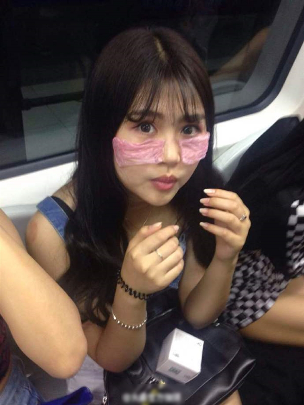城里人真会玩:美女地铁上安全套当面膜
