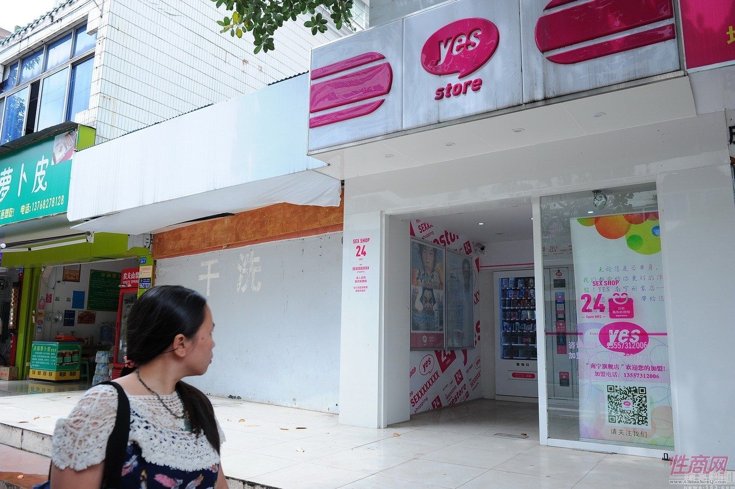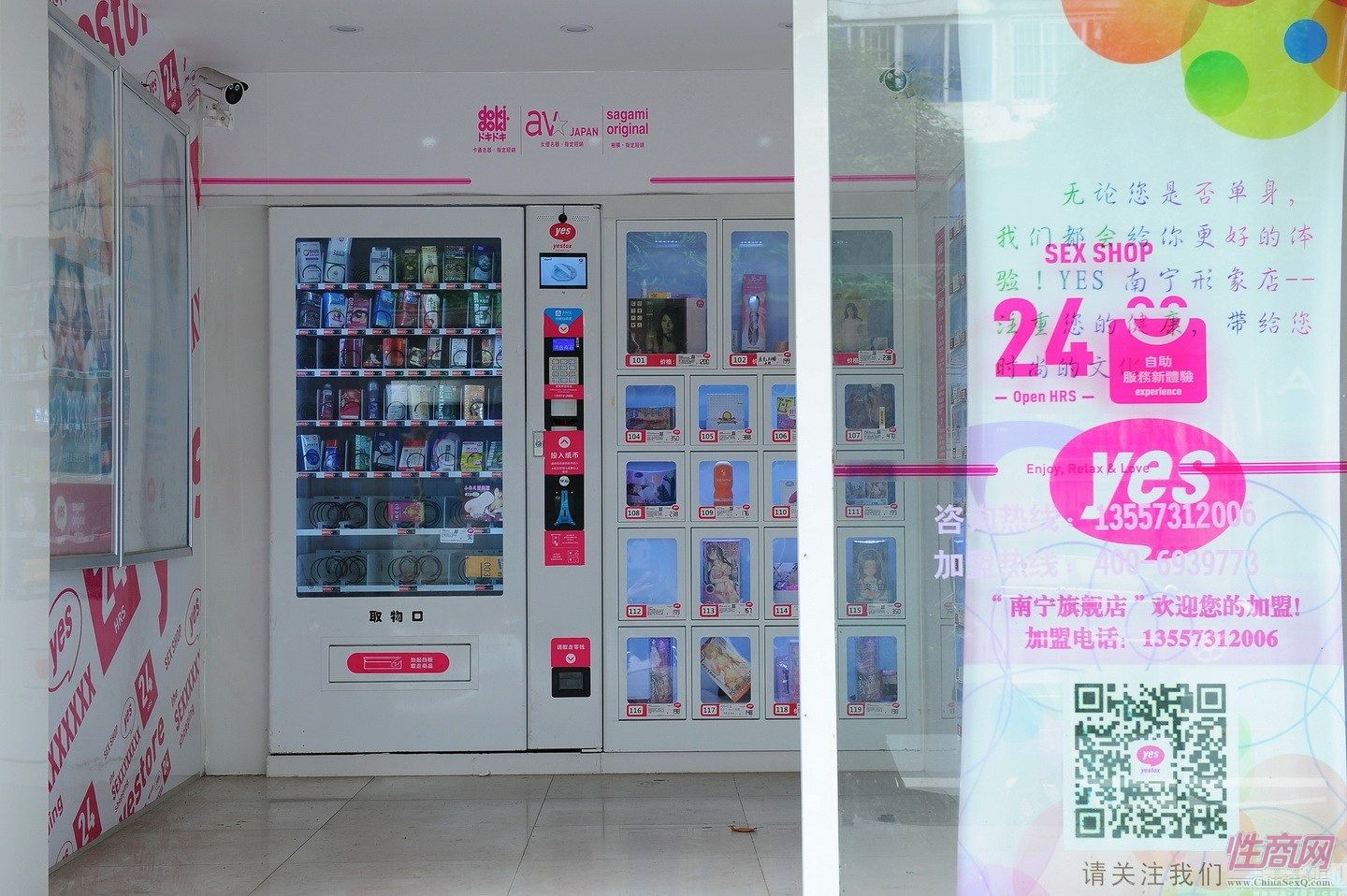 编者按:随着生活水平的不断发展,在追求高品质的生活的同时也追求着更有质量的性爱,近2年,中国的成人用品市场可谓是在全国排名靠前的,大大小小的成人用品店也在大街小巷越来越多,这不广西南宁市的思贤路的一处公交车站台后面,有一家新开的24小时自助成人用品店,店面不足10平方米,整个店面以白色和玫红色为主色调,设计简洁,灯光明亮,并有监控探头。店铺的玻璃门是敞开的,一面墙挂有宣传海报,另两面是橱柜。橱柜里有些格子的产品已经售空。很多市民觉得又是欢喜又是忧,成人用品自助店虽然很方便,但是有些市民担心会对未成年的孩子的身心造成一定的影响,导致他们性早熟,小编觉得凡事都有两面性,对于家长的担忧也可以理解,但是做好对孩子的性教育也是孩子成长的一个关键。