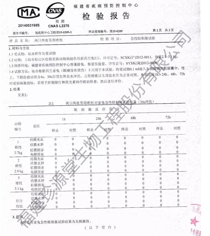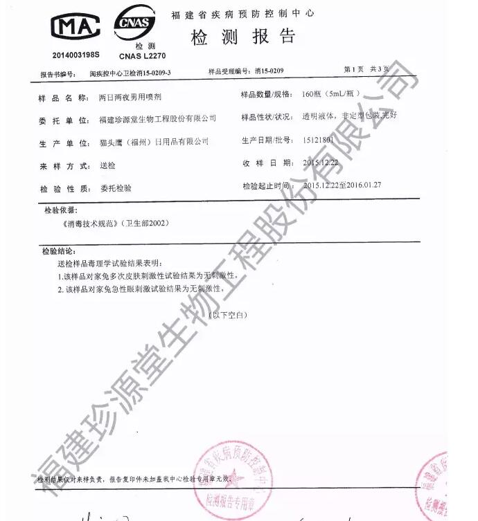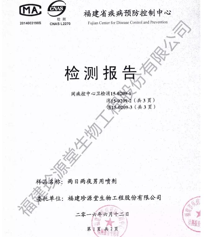 作为中国药房专业品牌的两日两夜男用喷剂, 通过了SGS,PONY,中广检等权威国内外检测之后,再次获得中国官方检测通过,严格的中国疫控中心安全评测检测已取得报告。