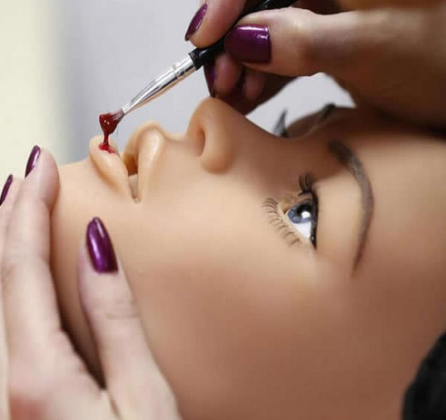 图为给充气娃娃嘴馋上色,让它更美丽。