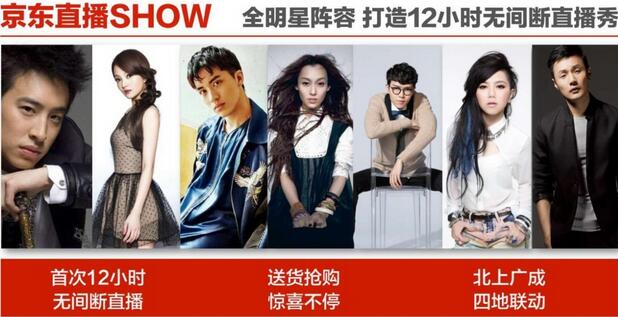 京东也把“买买买”和“逛逛逛”结合在一起,引入一众明星12小时不间断直播秀,让你一边抢货,一边大饱眼福。