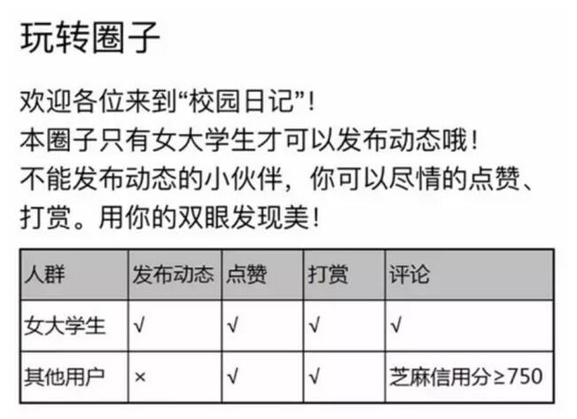 什么?!你想要妹子的联系方式?哦,要芝麻信用分在750以上才能评论和互动呢,怎么办呢?赶紧的去买买买啊,一大波妹子等着呢!不得不说,虽然生活圈“不正经”,但是这个营销方式还是令人钦佩啊!