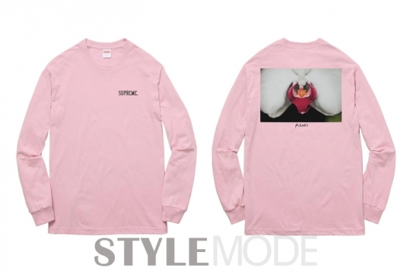 花朵在荒木经惟的作品里具有一定的意义,这回与Supreme的合作当中也可以看到。包括连帽外套、长短Tee等,多种配色都可以让粉丝选择。