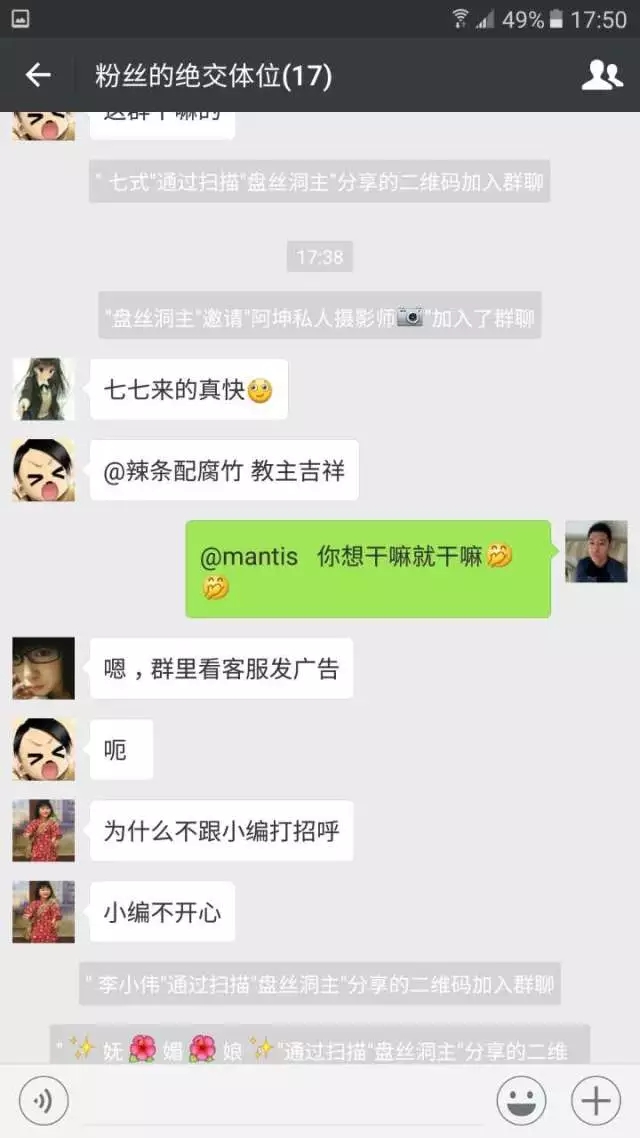 长话短说 ,昨天小编建了个微信群 - “ 粉丝的绝交体位 ” 。我的原意是想对几位EX人偶买家 ,或者EX人偶粉丝来个采访 ,后编写成 “ EX访谈录 ” 。结果可倒好 ,群里的人一个比一个脑洞大 ,想象力丰富 ,看到大家如此开心小编也很欣慰 。