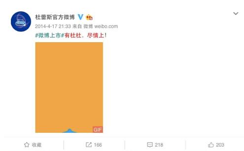 2014年,微博上市,杜蕾斯打出如下文案:有杜杜,尽情上!