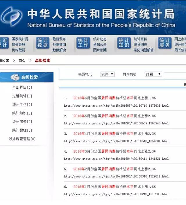 中华人民共和国国家统计局2016年1月-6月消费水平增长趋势图