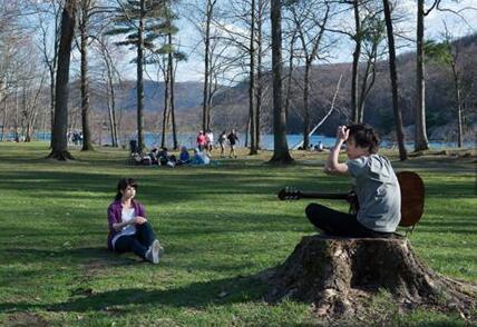 坐在公园长椅上,不无陌生人的异样眼光。