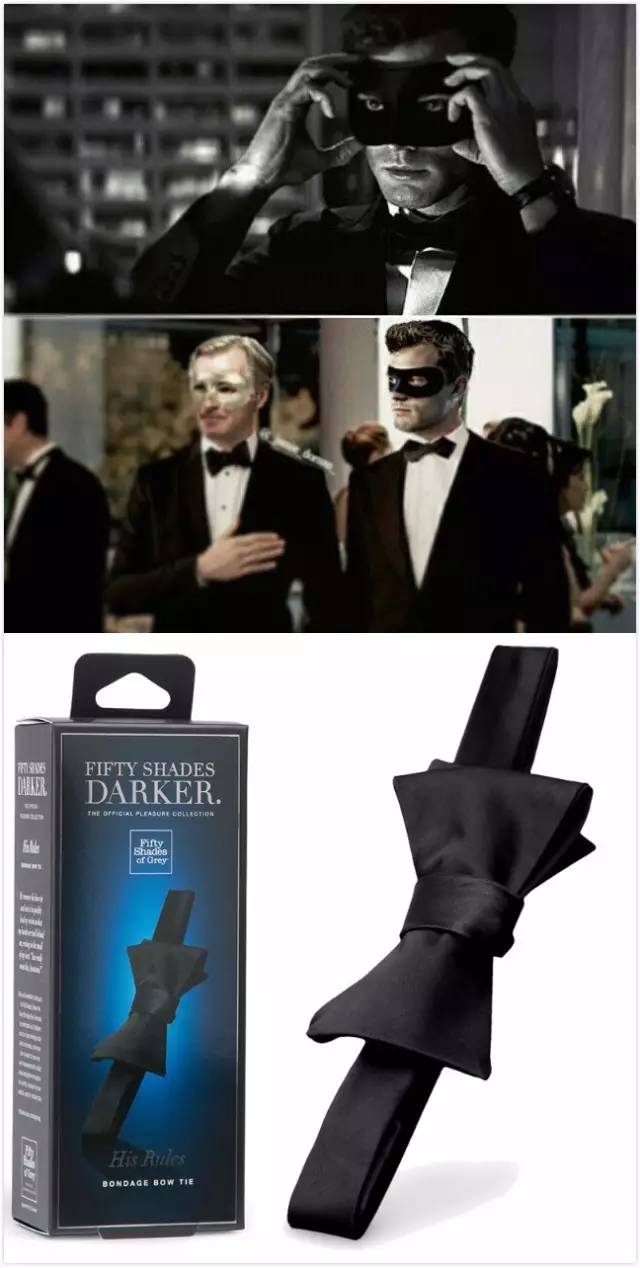 正如Anastasia的眼罩,Christian的领结也是完全可以带去化妆舞会的,深藏功与名的爱爱道具有木有?看着只是很绅士很常规的领结,但一到卧室你就可以把它拉长,长到可以捆绑住女生的手腕、脖子。