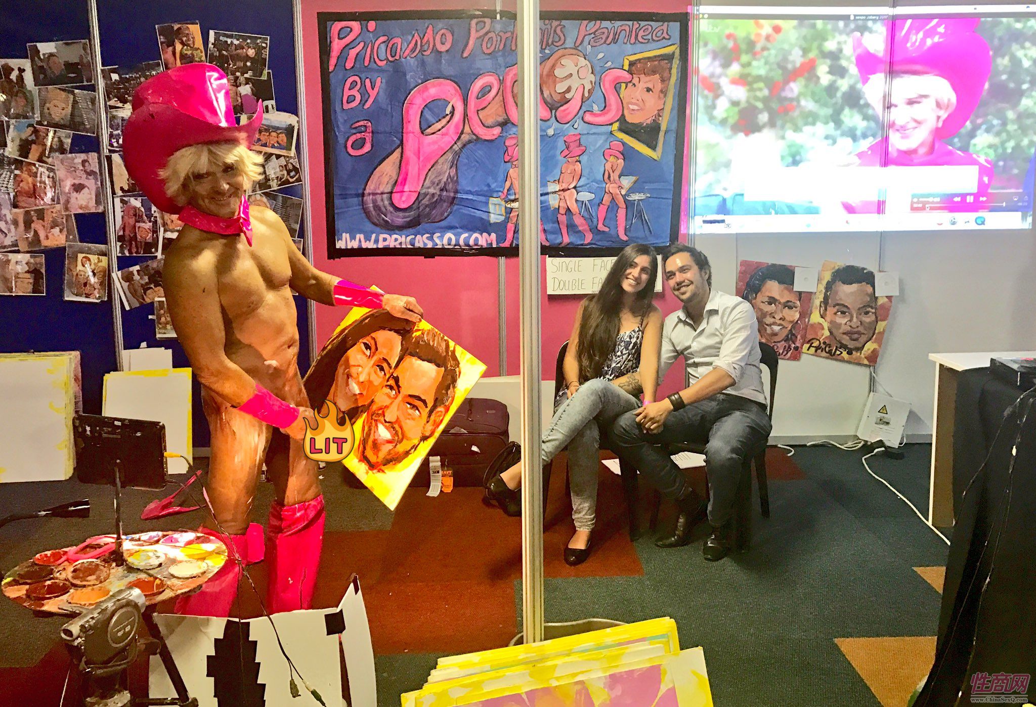 除了各类常规的精彩表演,人体油画也是此次展会的一大亮点。现场有“一丝不挂”的自由画家为你现场描绘画像,用色大胆、夸张,也许跟本人形象大相径庭,但重要的是给前去参展的观众增添了不少实实在在的乐趣,使整个展会也变得更加难忘。