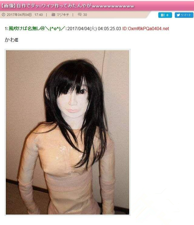 编者按:最近举办的上海成人展着实是一场充气娃娃盛宴,大大小小的人偶充斥在展馆的各个角落,这些人偶基本上都是肤质柔软,外表靓丽,身材火辣,这也让参展的观众们大饱了眼福。不过,并不是所有的男性朋友都喜欢这种类型的充气娃娃,比如日本网友最近在网上po出了自己亲自制作的充气娃娃,小编只能说:那画面太美我不敢看……