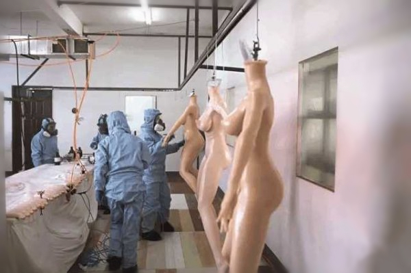 但凡不是气球版的娃娃,而是硅胶版的,它们在出厂之前,一般都会经历这样的场景。