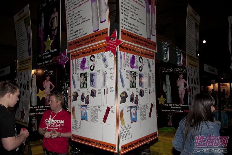 鉴于Sexpo的知名度和影响力,全澳洲大部分成人情趣用品相关企业参加了2011澳大利亚布里斯班成人展。现场情趣用品琳琅满目,吸引采购商前来洽谈咨询。有很多产品也现场售卖,价格相对市场价更优惠,很多年轻观众现场购买。