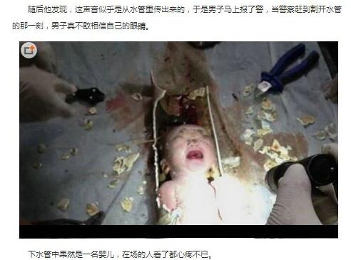 近日,一则“水管内捞出婴儿”的新闻跃然纸上,画面触目惊心,好在婴儿只是头部受伤,在经过紧急的救治之后已经脱离危险。