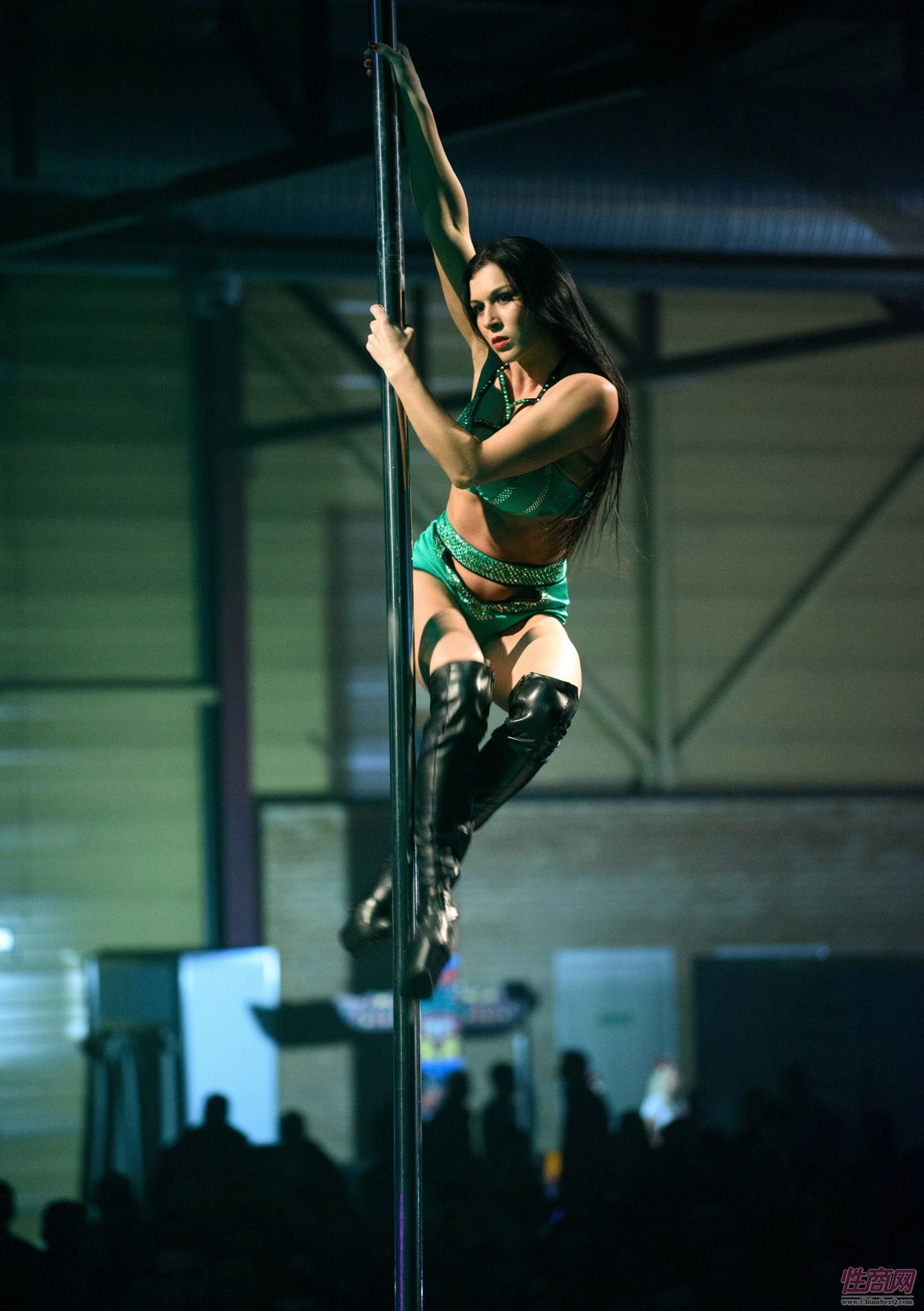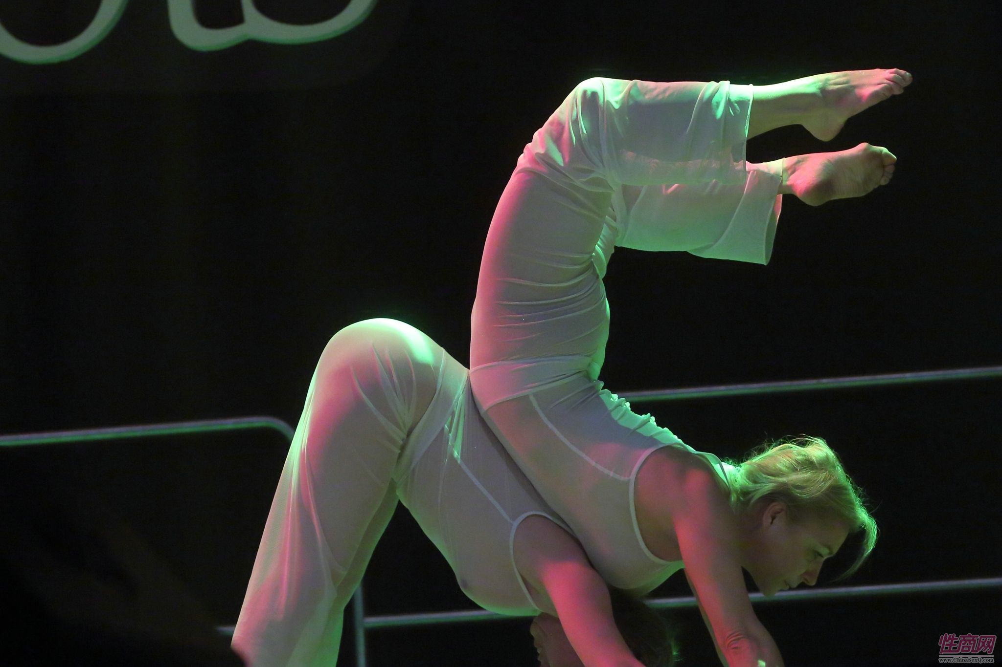 钢管舞女演员的高难度动作