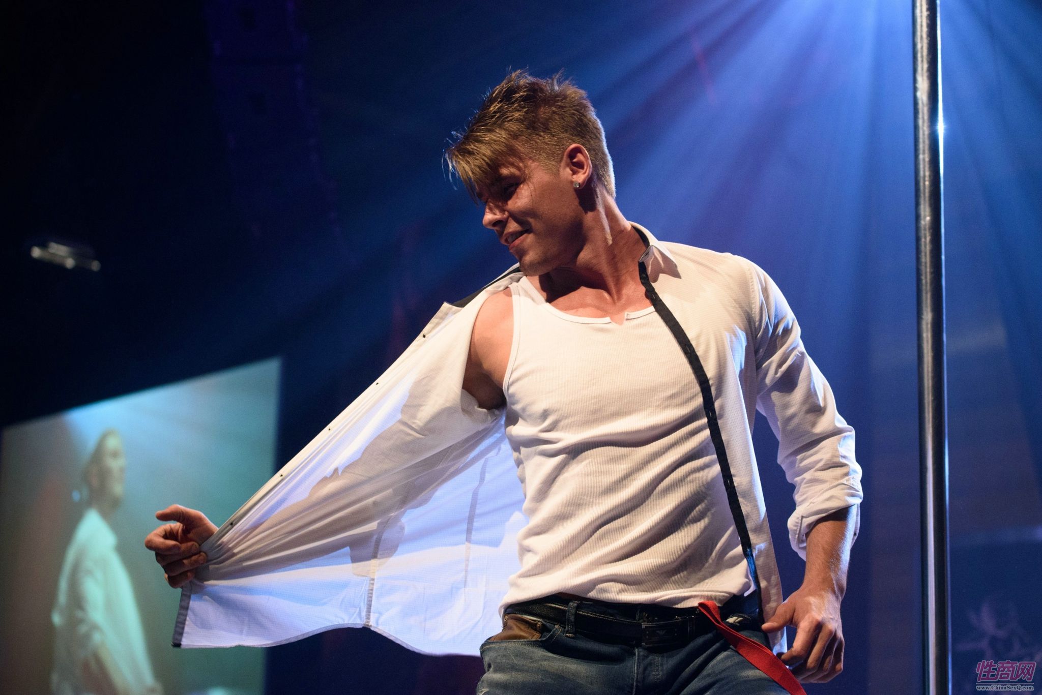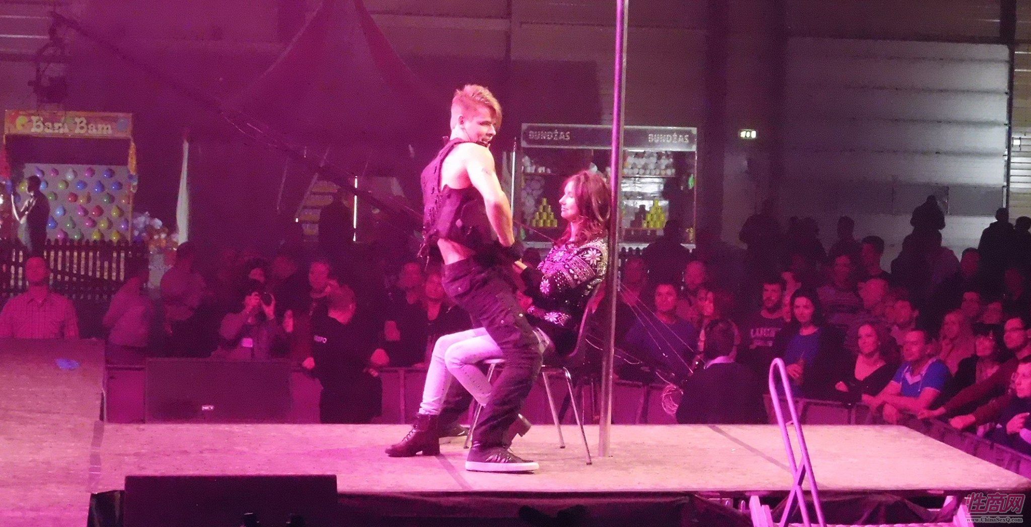 现场女观众与肌肉男舞蹈员激情互动