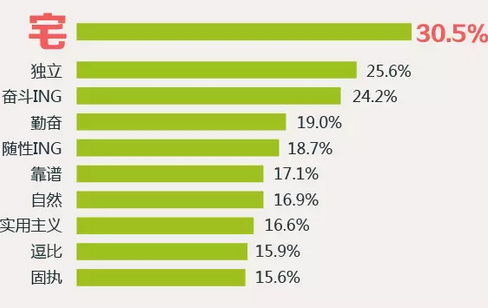 30.5%的90后认为自己很宅,62%的90后最喜欢的休闲娱乐方式为宅在家里上网,位列90后自我评价中前三的还有独立和奋斗。