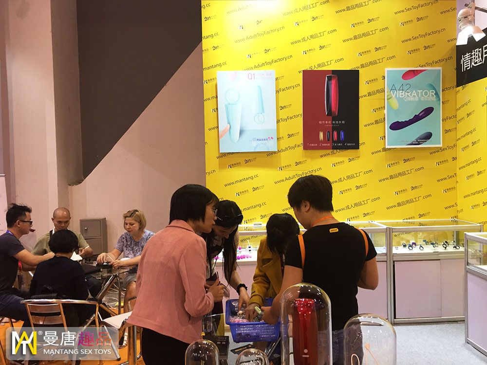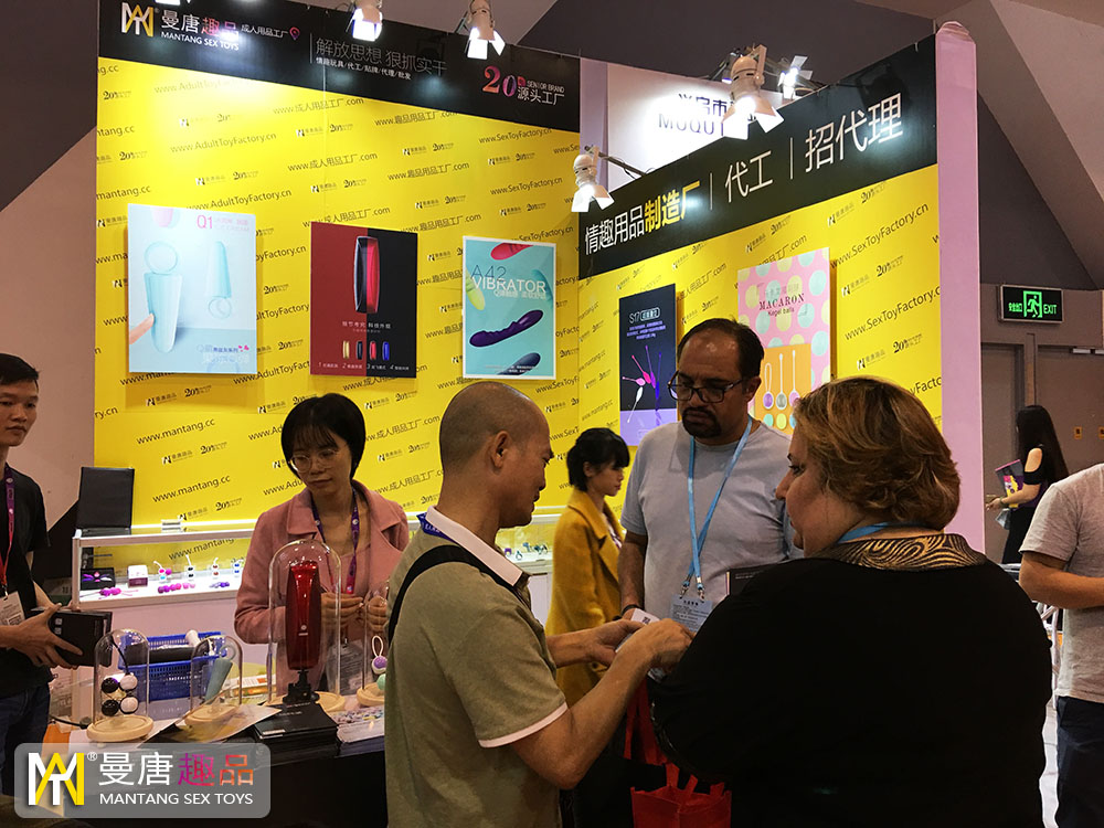 另外,本届展会尤为耀眼的展厅——东莞成人用品工厂曼唐趣品,中国著名成人用品生产厂家。作为上游型企业来参展,展厅设计时尚简约,产品布置趣味横生。吸引众多国外嘉宾咨询、洽谈合作事宜。以下是现场图片: