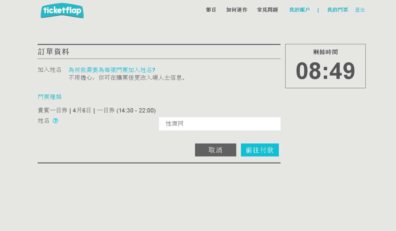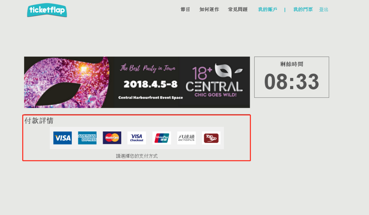 如果你还没有ticketflap 账号,会跳转至注册界面,注册很简单;已经有ticketflap 账号的,会直接跳转至付款页面(付款方式没有支付宝,也没有微信支付),所以可以选择银联支付。