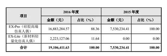 蒂艾斯的招股说明书显示,生产仿真人偶的材料主要为硅胶和聚氨酯发泡材料。2016年度,蒂艾斯原材料成本为394.40万元,占总成本的45.67%,几乎占据半壁江山。