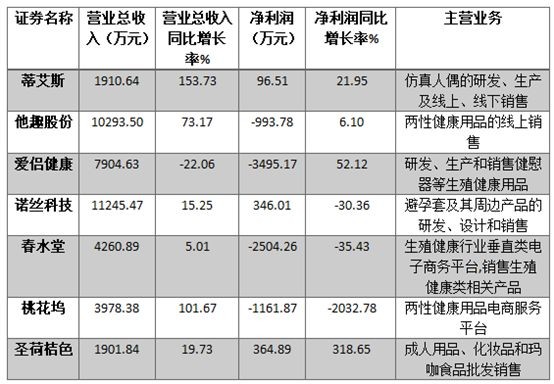 这一点对于新三板上的其他情趣用品生产企业或是情趣电商也是成立的。据不完全统计,当前新三板上情趣用品公司还有他趣股份、爱侣健康、诺丝科技、春水堂、桃花坞、圣荷桔色。