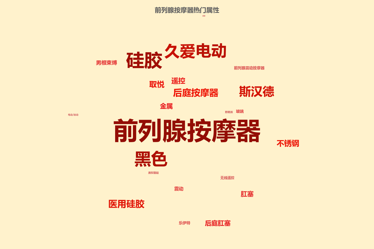 前列腺按摩器的热门关键词有:硅胶,黑色,电动,不锈钢