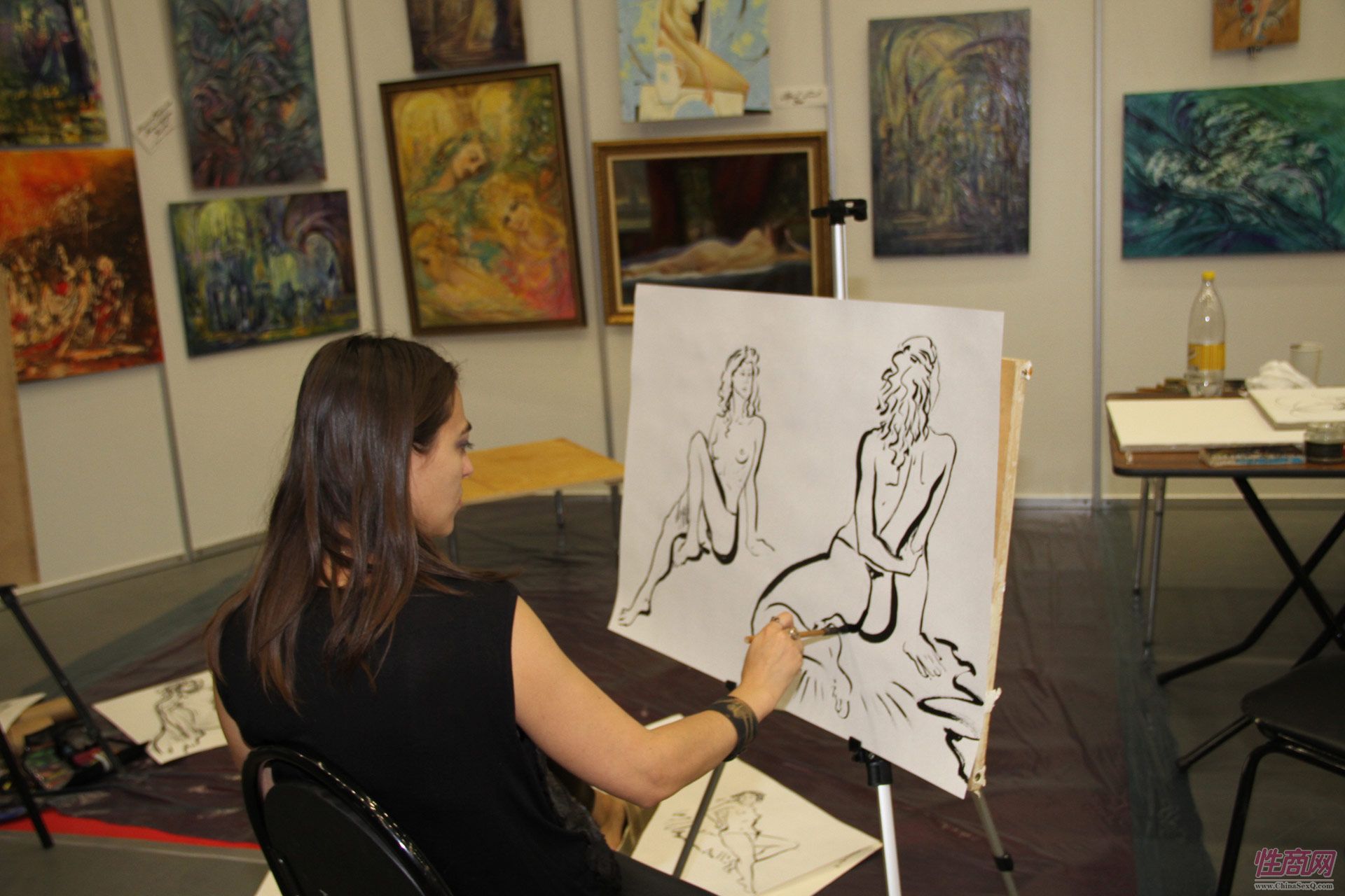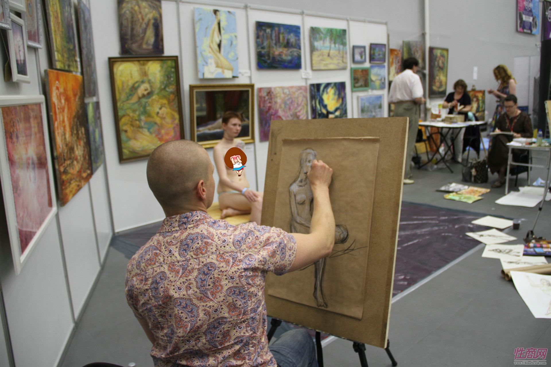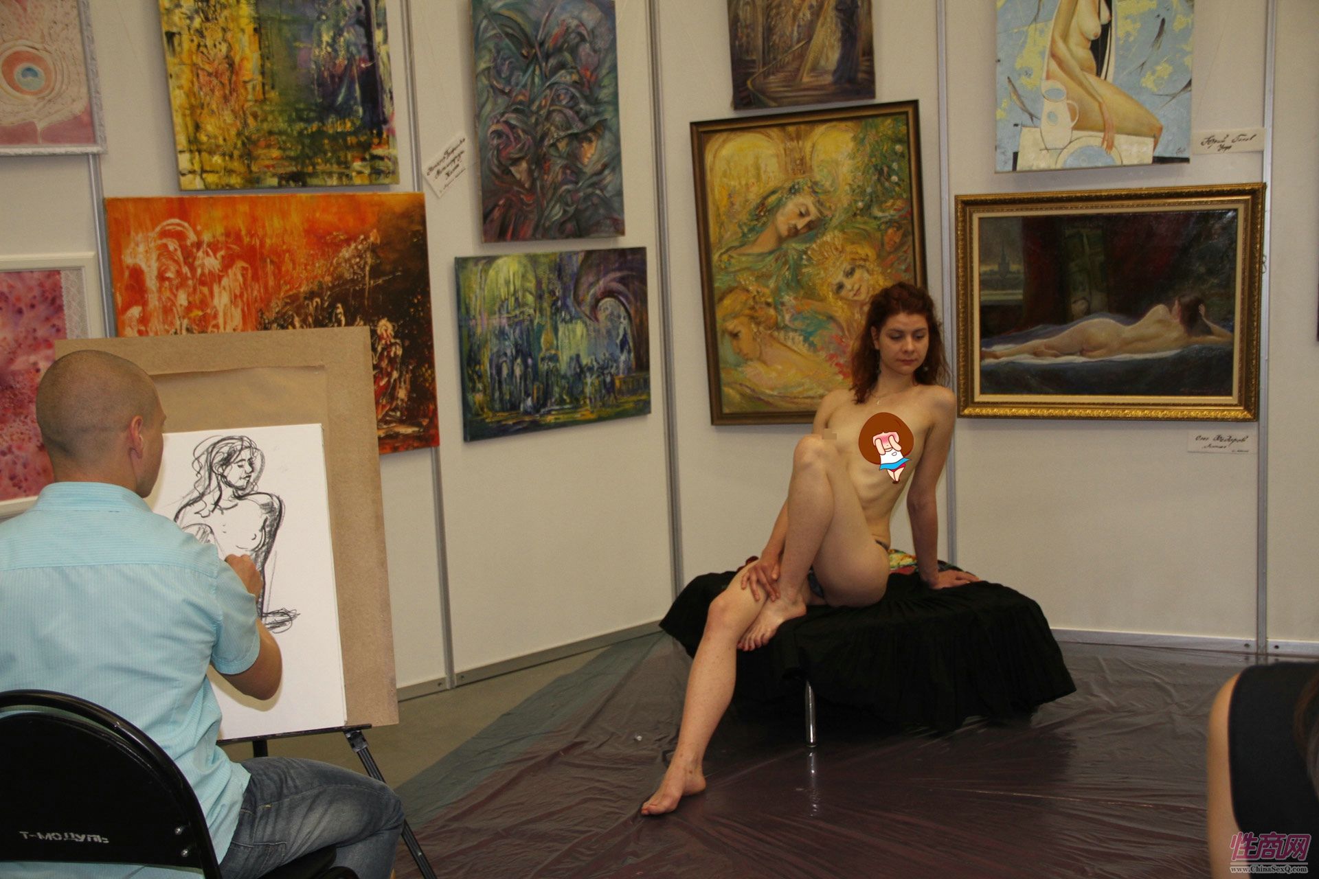 艺术家现场绘画,人体模特非常专业